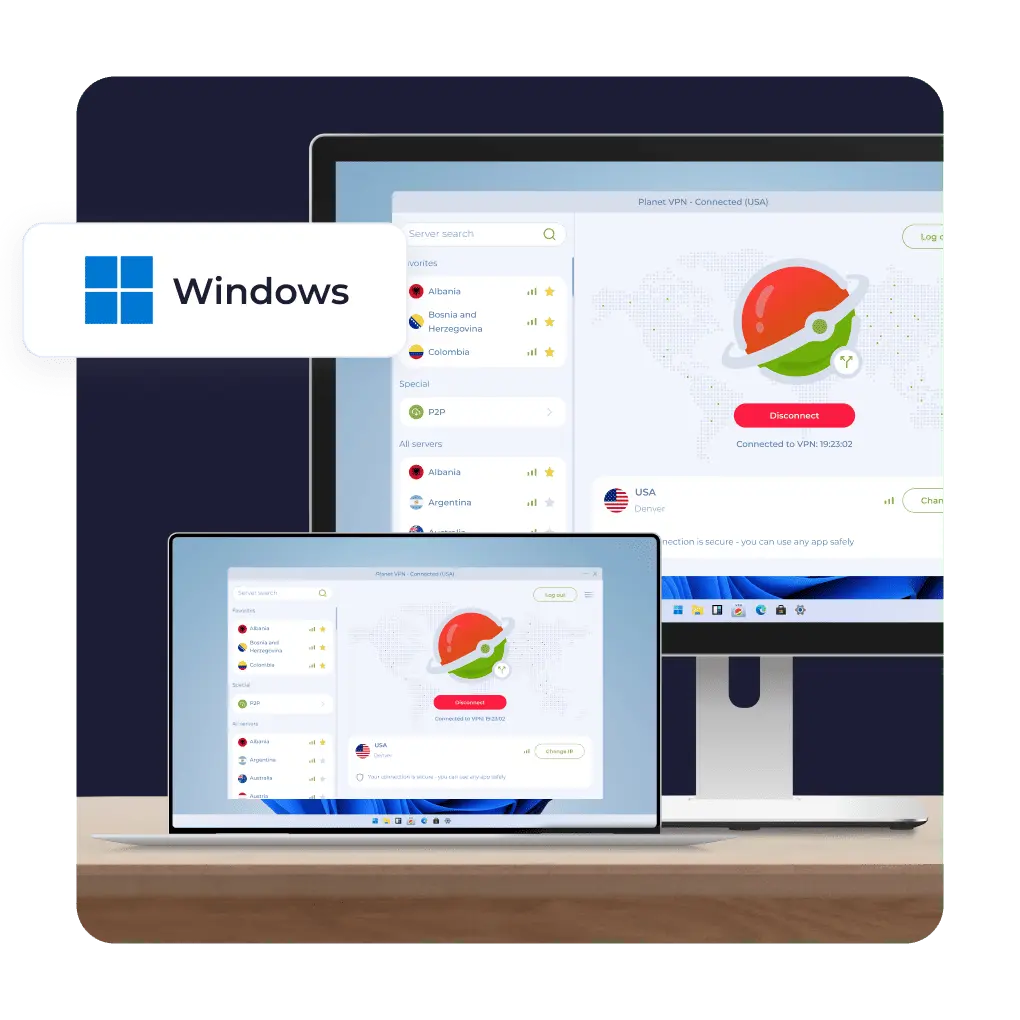 Planet VPN es compatible con la VPN gratuita para Windows 11, así como con Windows 10, 8 y 7. La aplicación funciona de forma estable tanto en dispositivos nuevos como antiguos.
