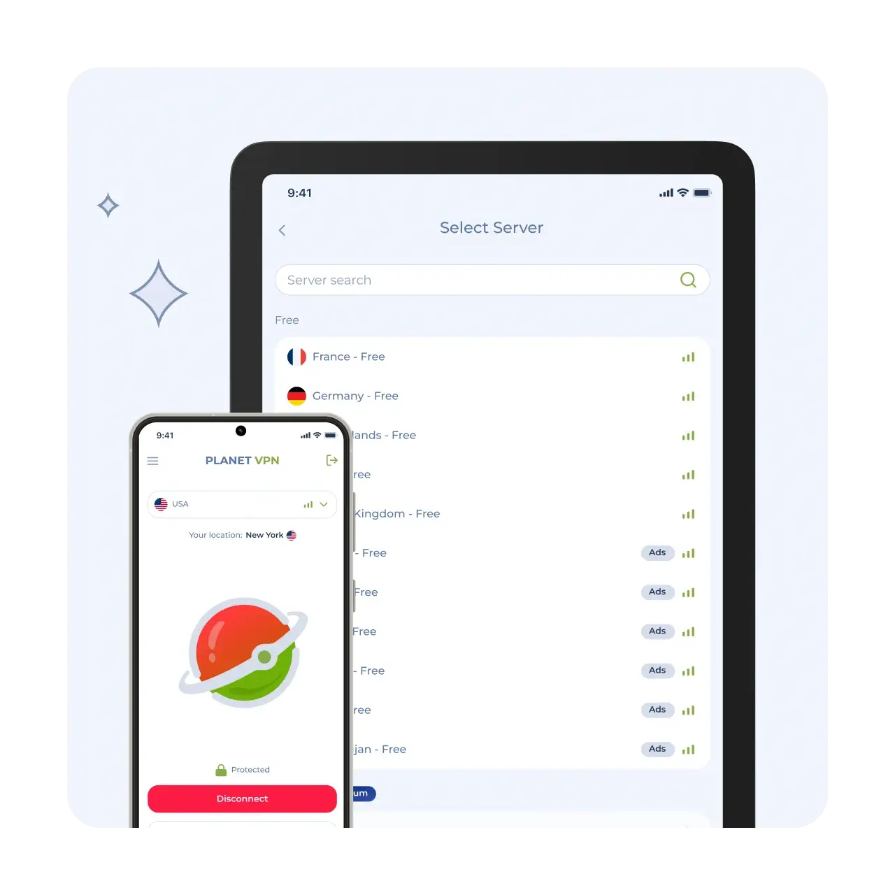 Хочете отримати більше від Planet VPN? Оновіть підписку в будь-який час через додаток або сайт. Перейдіть на преміум-підписку, щоб отримати вищу швидкість, більше серверів, безперебійне потокове передавання та додатковий захист.